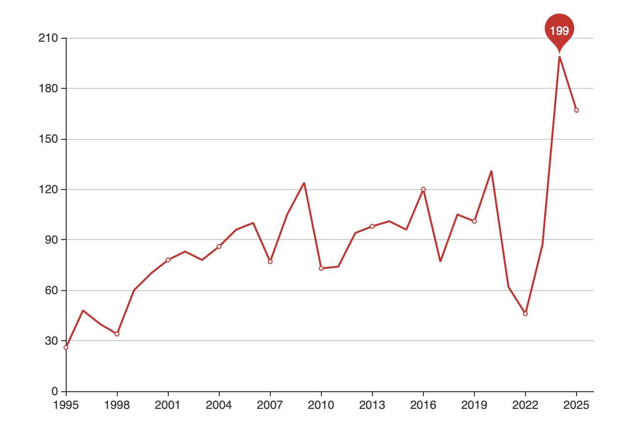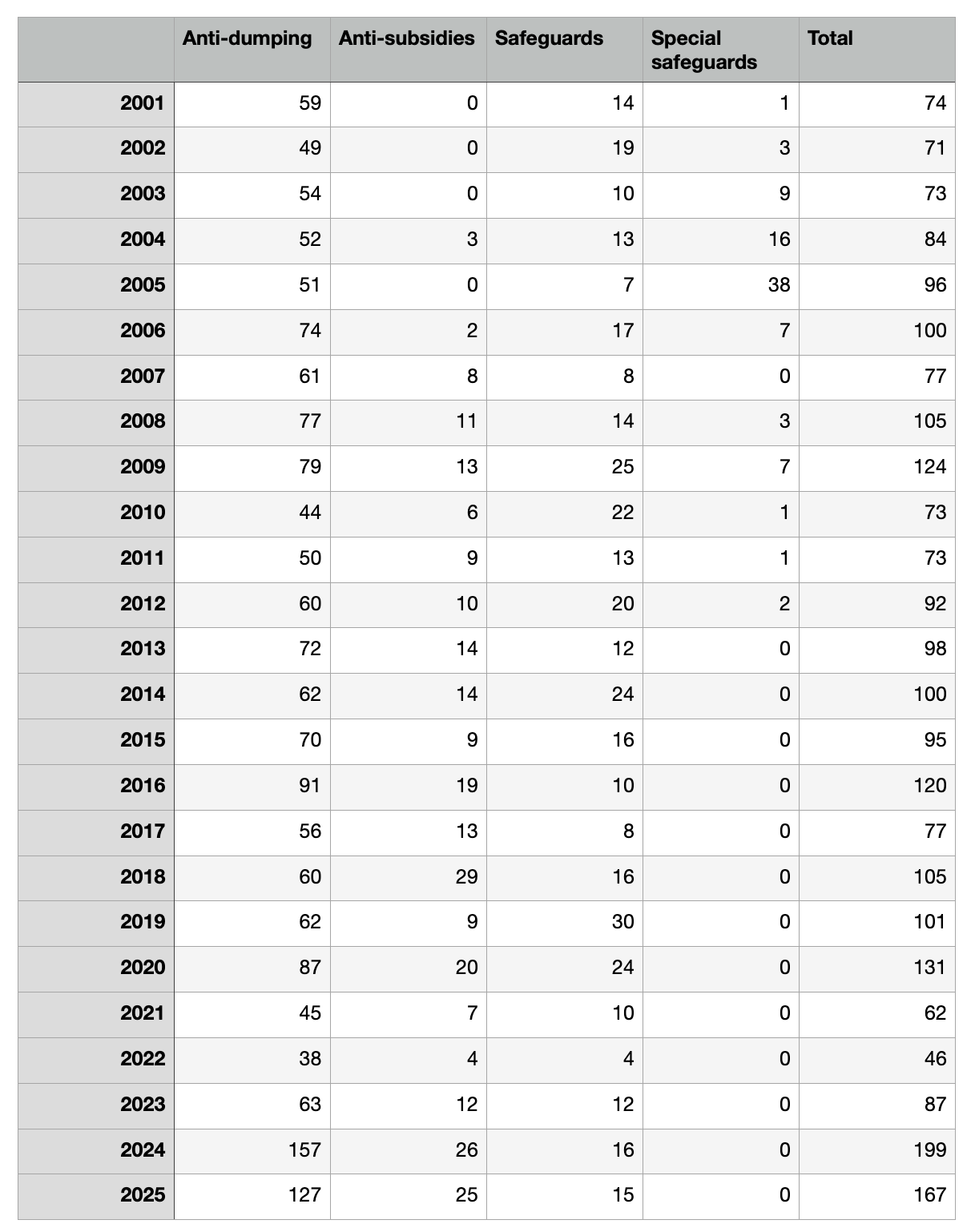 While this figure declined to 167 in 2025, the number of new cases remained significantly above pre-2024 levels, signaling a new normal of heightened global trade friction.