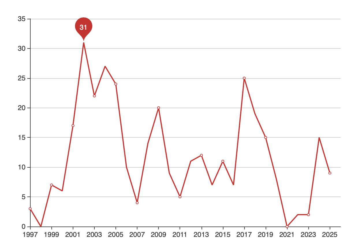 Notably, China’s own recourse to trade remedies is following an opposite trajectory. Chinese investigations into foreign imports peaked in 2002 and have trended lower ever since. In 2024, China launched 15 trade remedy cases, and the number further dropped to 9 last year.